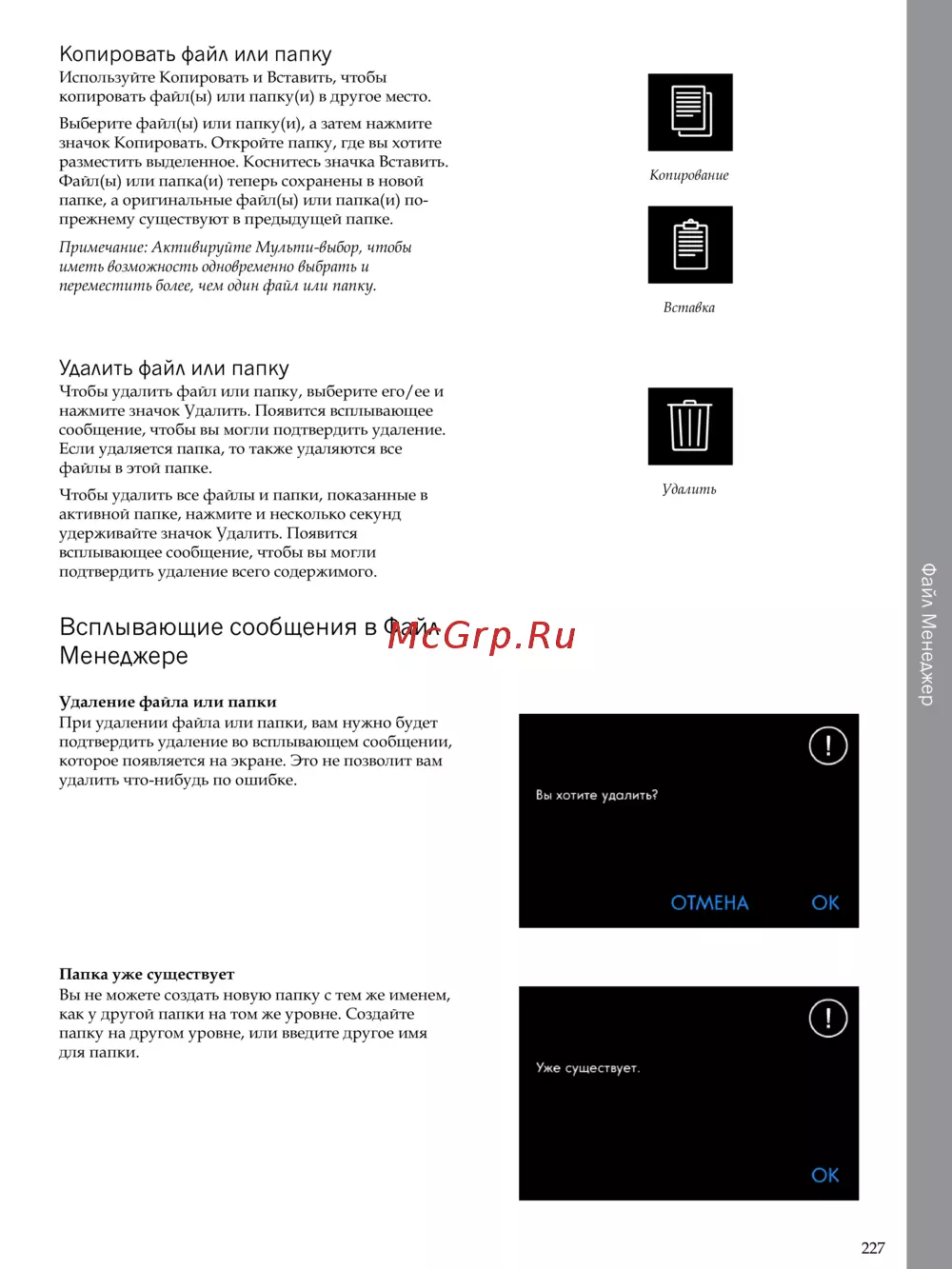 - Всплывающие сообщения в файл менеджере p.227