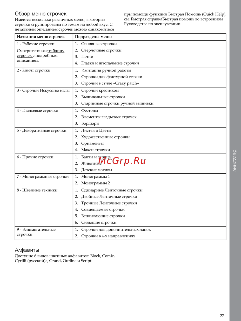Pfaff Creative Icon [27/240] Обзор меню строчек