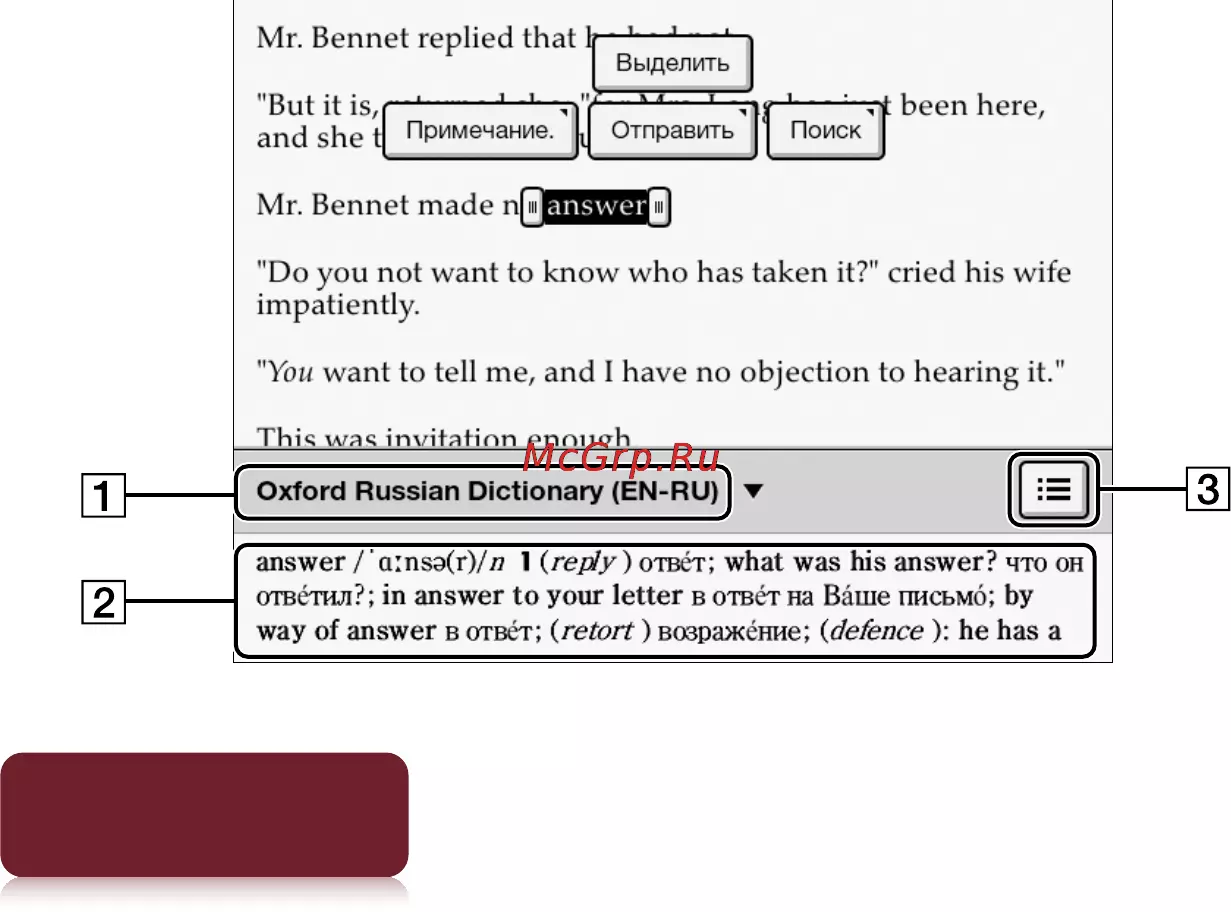 Устройство Reader содержит встроенные словари,