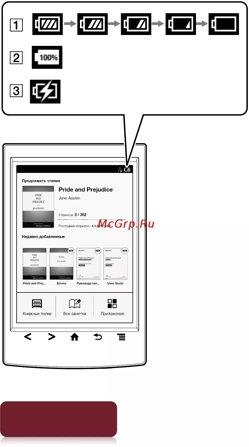 Sony PRS-T2 White [39/296] Значок состояния зарядки батареи