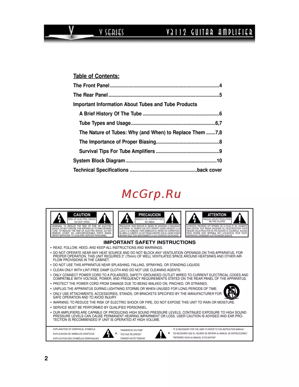 Crate V3112T — основные инструкции по безопасности для усилителей на лампах [2/12]