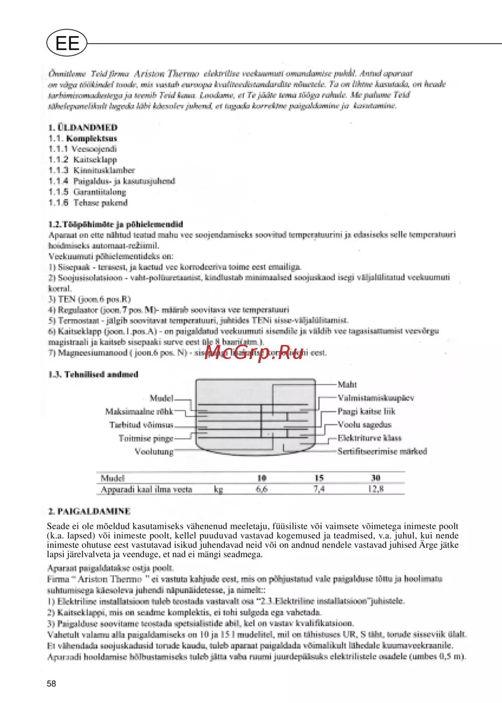 Ariston EurekaИнструкция по эксплуатации -