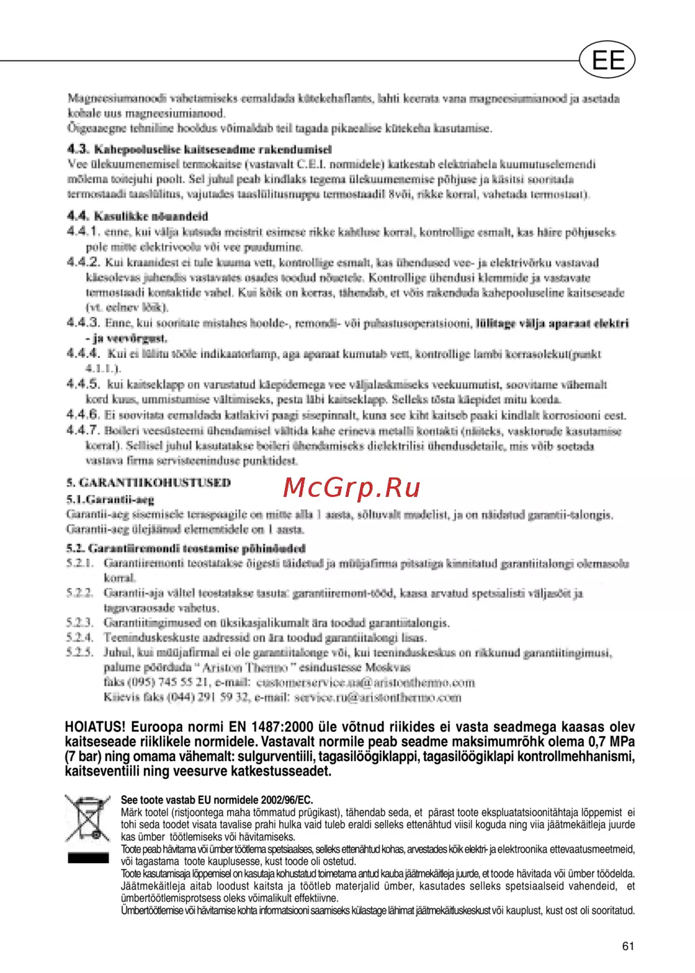 - See toote vastab eu normidele 2002 96 ec p.63