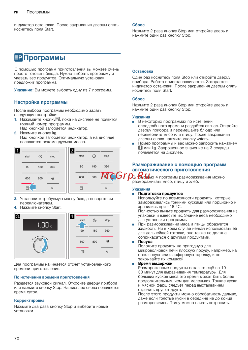Bosch BFL524MW0 — управление программами приготовления и размораживания продуктов [70/80]