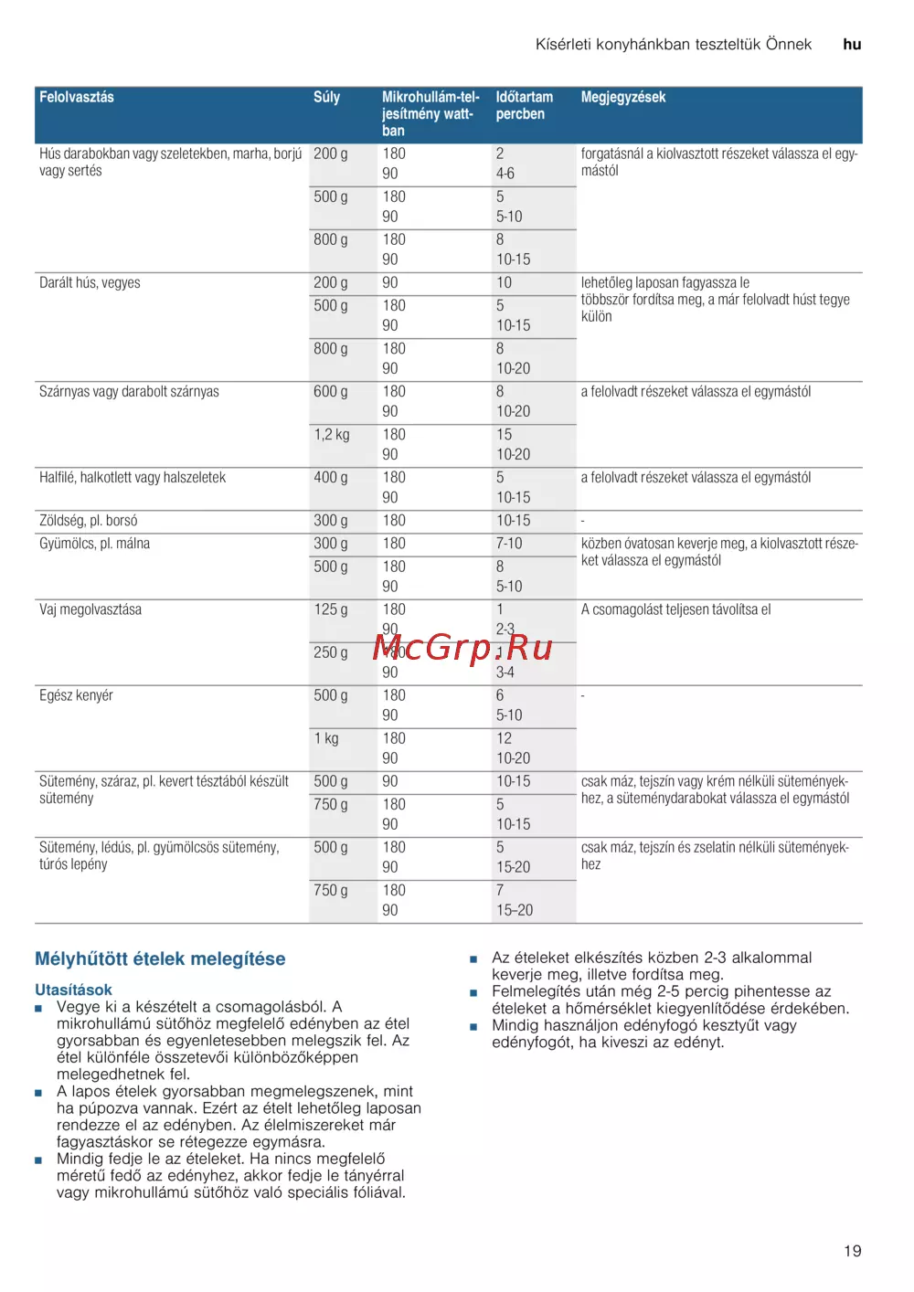 Bosch BEL523MS0 [19/92] Mélyhűtött ételek melegítése
