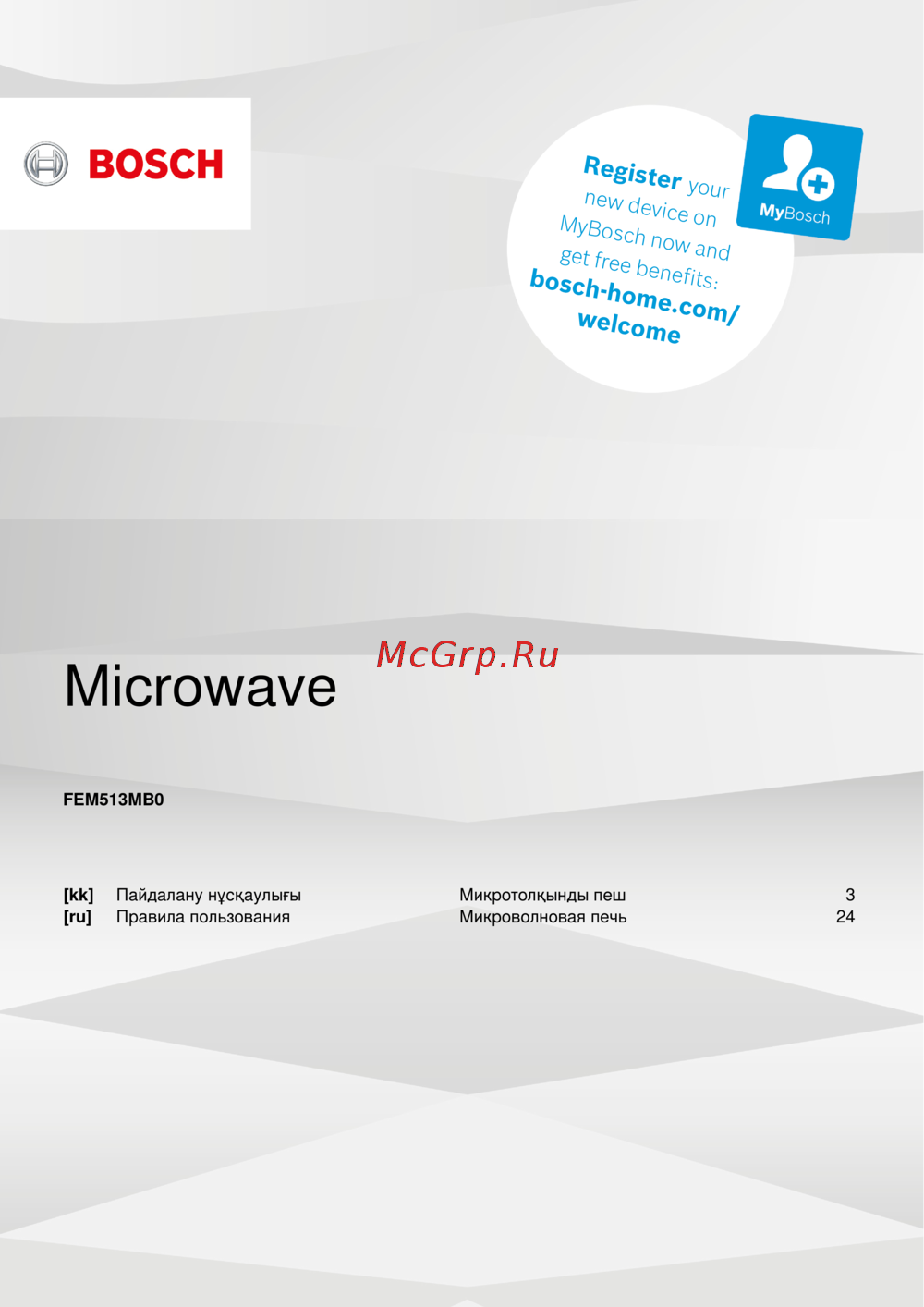 о BOSCH legiStery rl MyBosch Microwave FEM513MB0 kk Пайдалану нускаулыгы ru Правила пользования Микротолкынды пеш Микроволновая печь 3 24