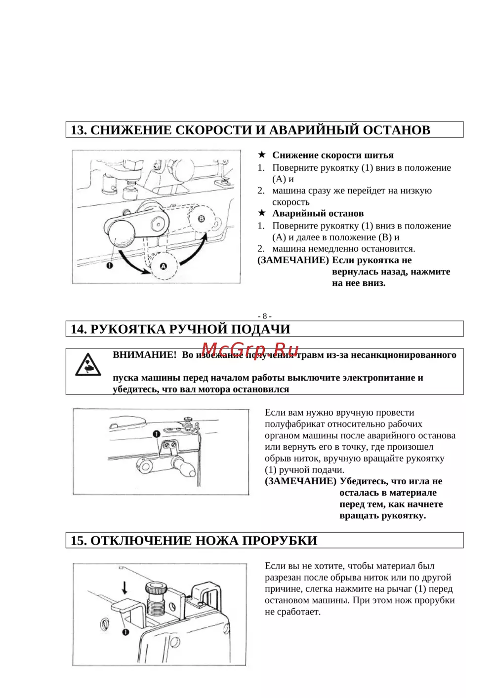 Узнайте, как правильно снизить скорость шитья и выполнить аварийный останов машины. Следуйте инструкциям для безопасной работы и предотвращения травм.