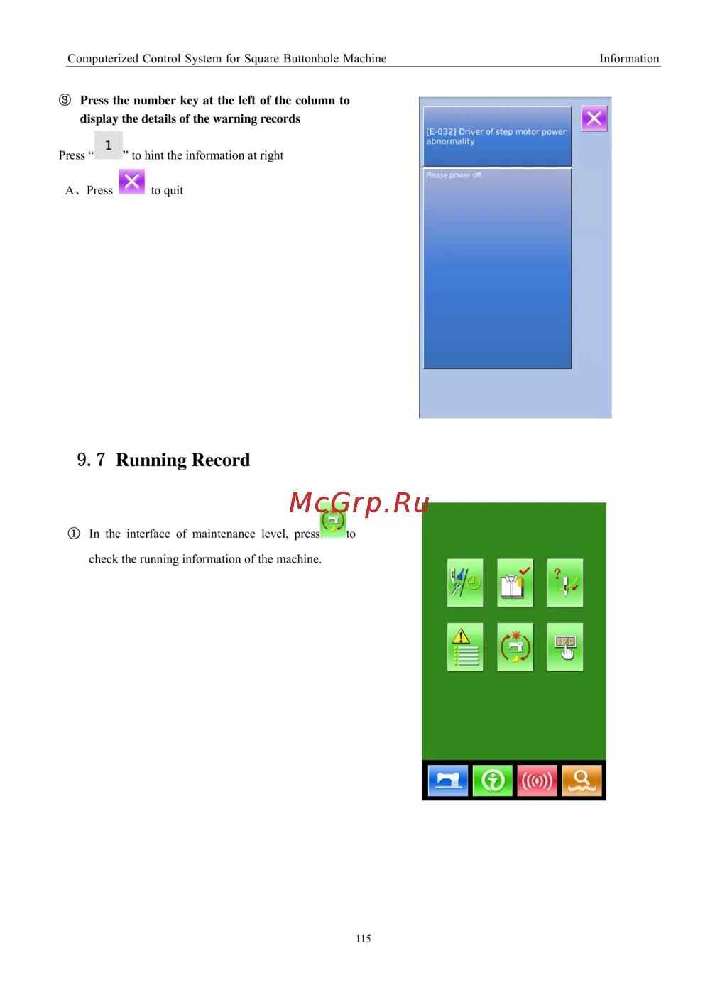 - Operating instruction computerized control system for square buttonhole machine p.24