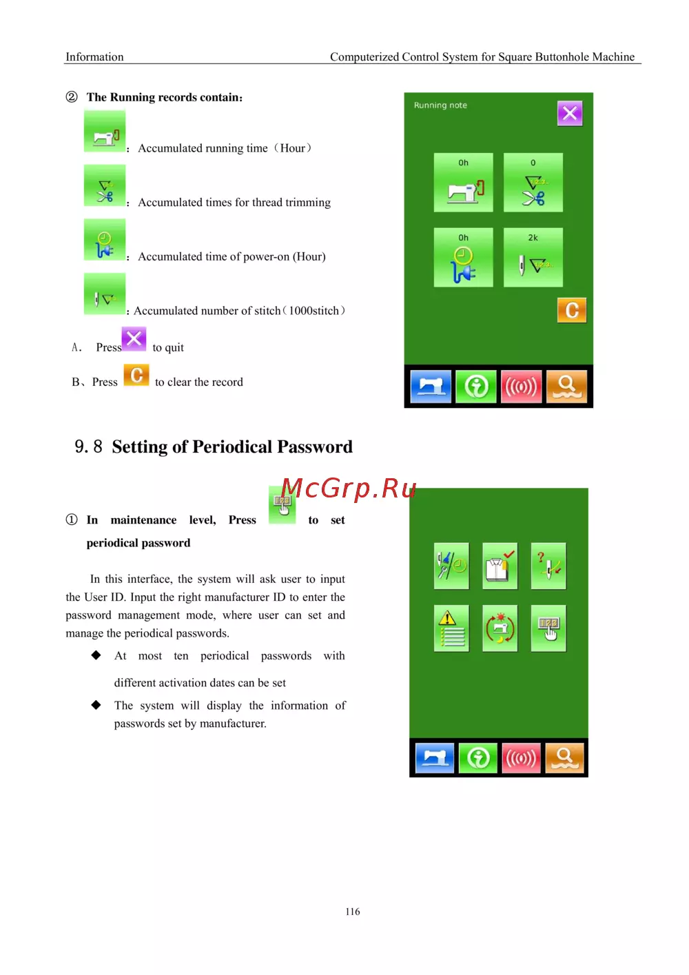 - Operating instruction computerized control system for square buttonhole machine p.24