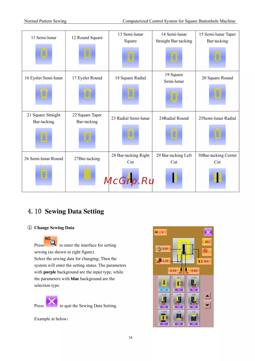 - Operating instruction computerized control system for square buttonhole machine p.24