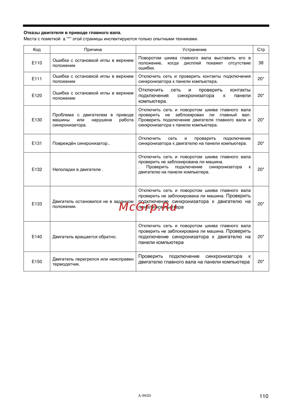Aurora A-9820 — устранение ошибок двигателя в приводе главного вала [133/139]