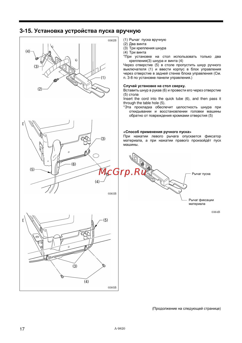 3-15. Установка устройства пуска вручную