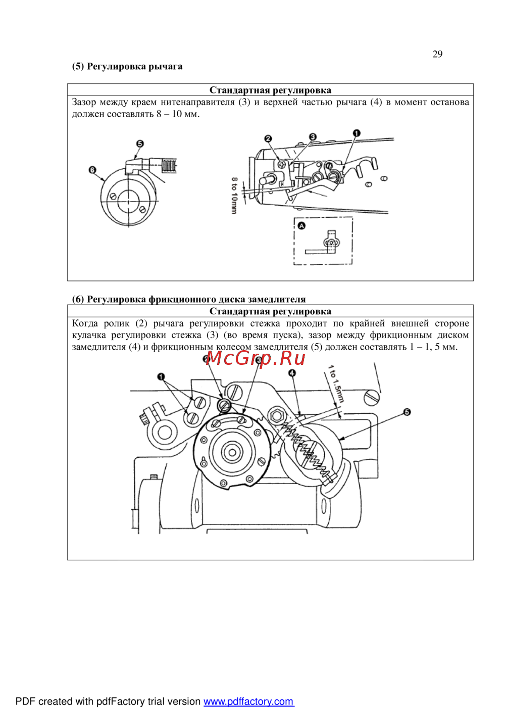 (5) Регулировка рычага