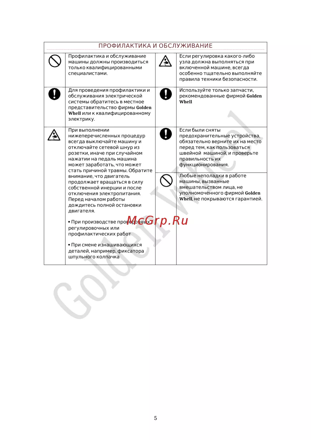 Golden Wheel CS-5100H — профилактика и обслуживание машин: советы и рекомендации [5/44]