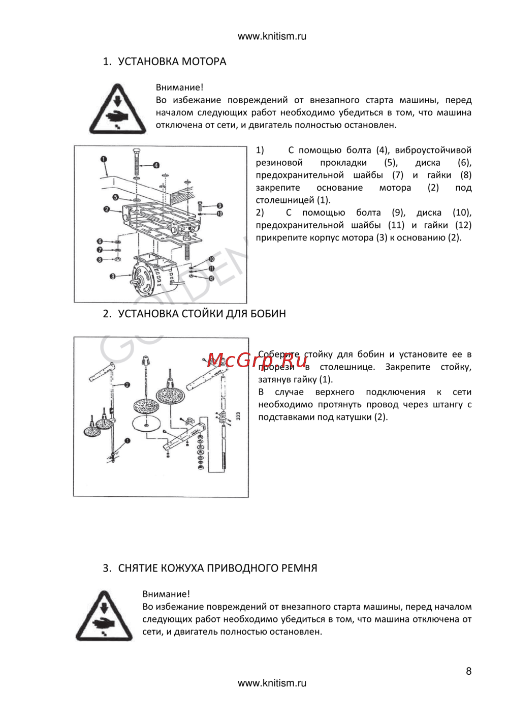 Golden Wheel CS-8150 — инструкция по установке мотора и стойки для бобин [8/27]