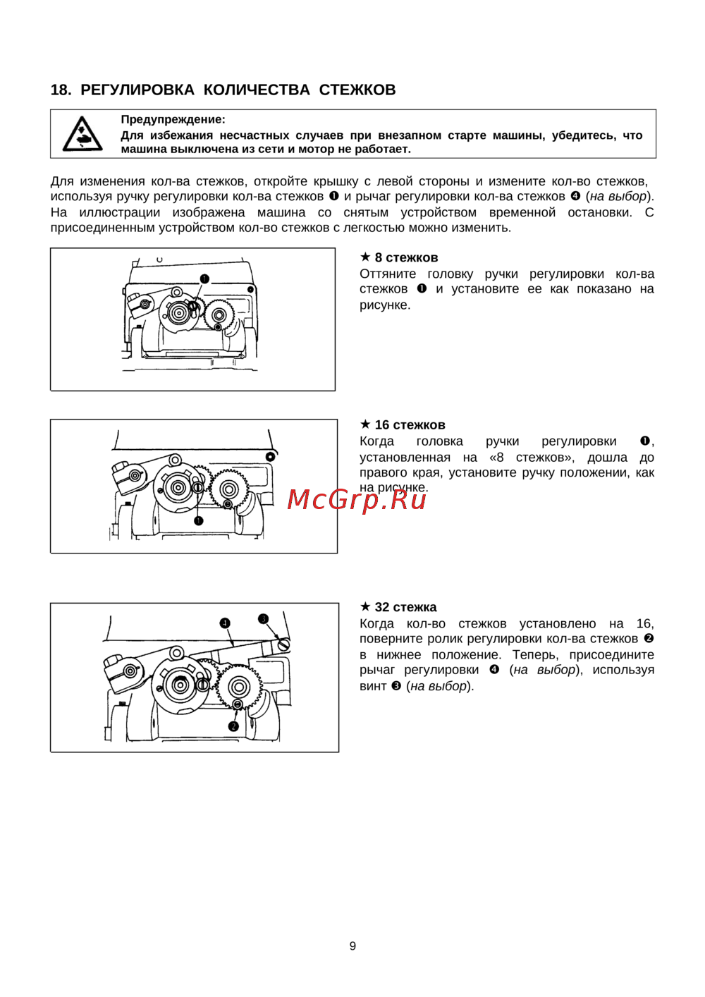 используя ручку регулировки кол-ва стежков и рычаг регулировки кол-ва стежков (на выбор).