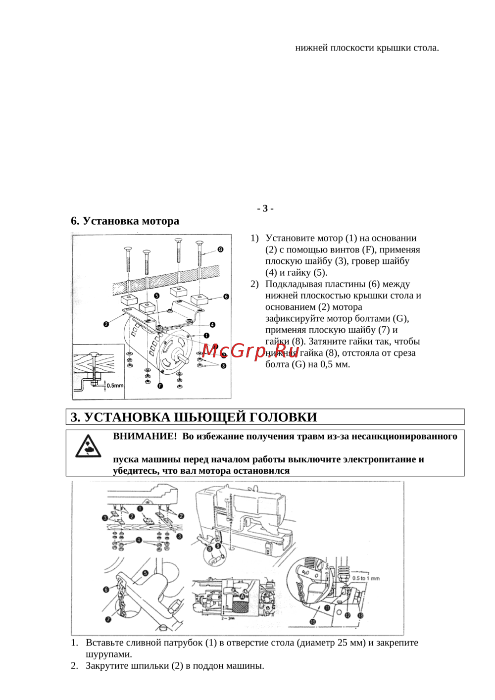 Golden Wheel CSH-7820 — инструкция по установке мотора и шьющей головки для стола [8/28]