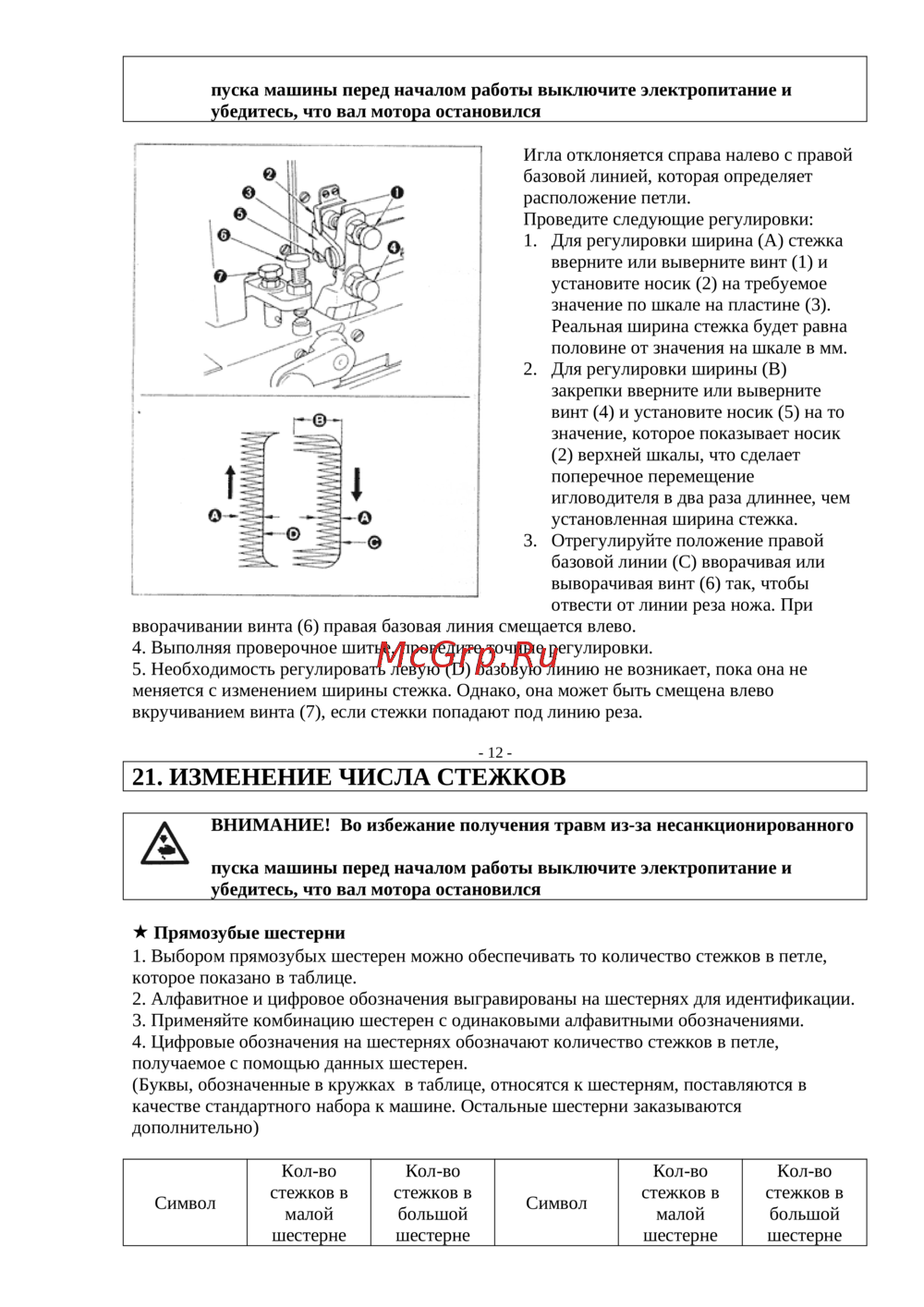 1. Выбором прямозубых шестерен можно обеспечивать то количество стежков в петле,