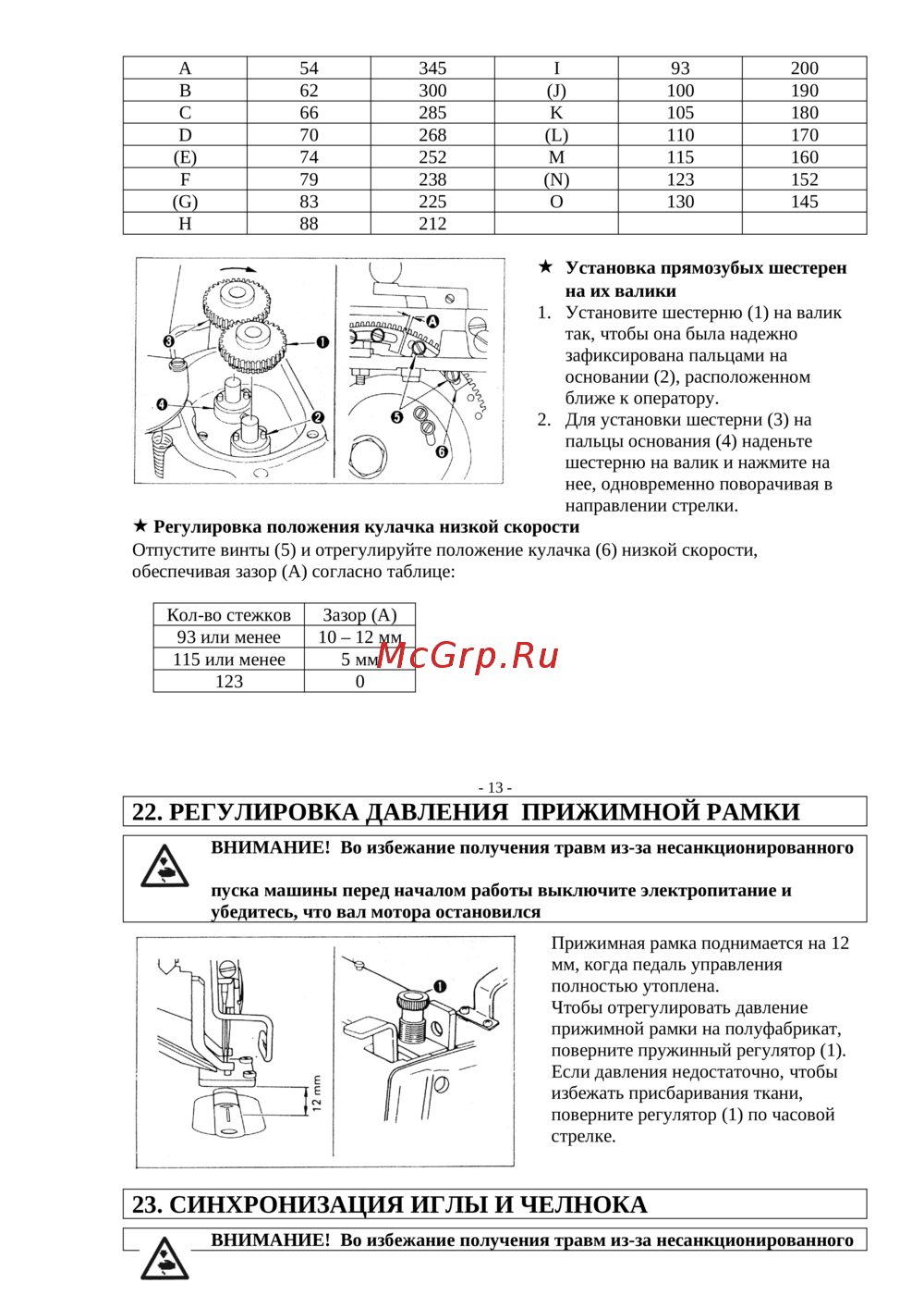 Подробное руководство по установке прямозубых шестерен и регулировке прижимной рамки. Узнайте, как правильно настроить кулачок низкой скорости и избежать травм.