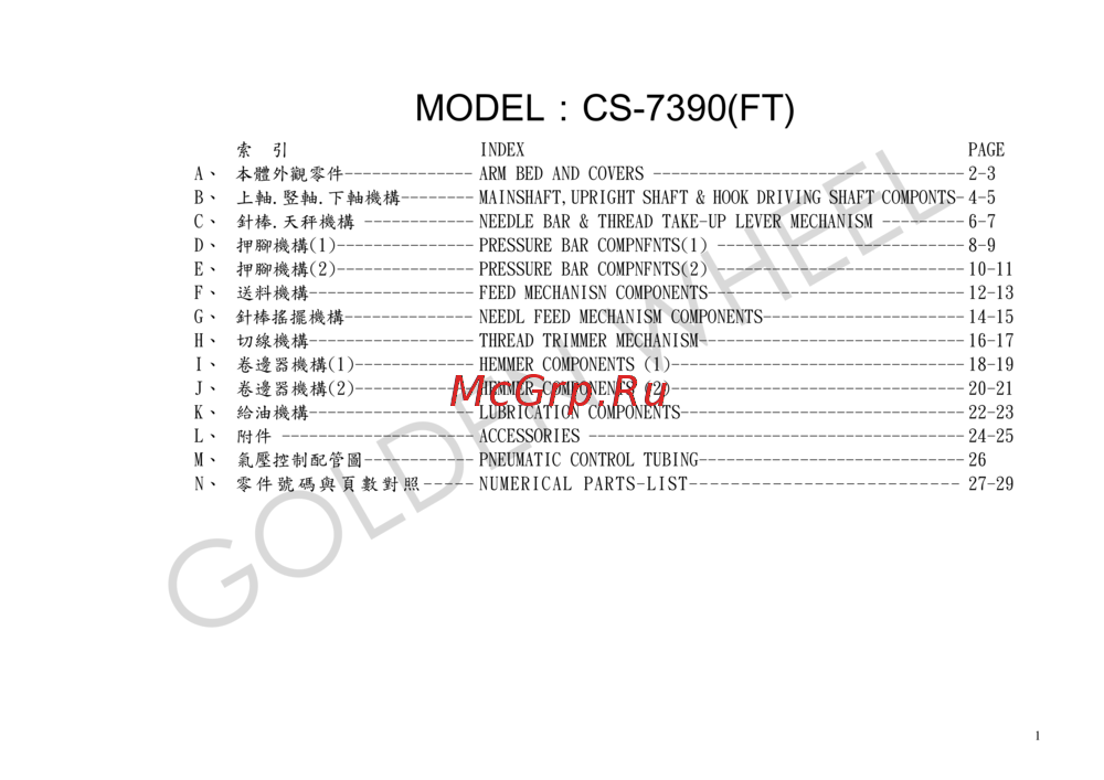 - P cs 7390 零件號碼與頁數對照 numerical parts list p.29
