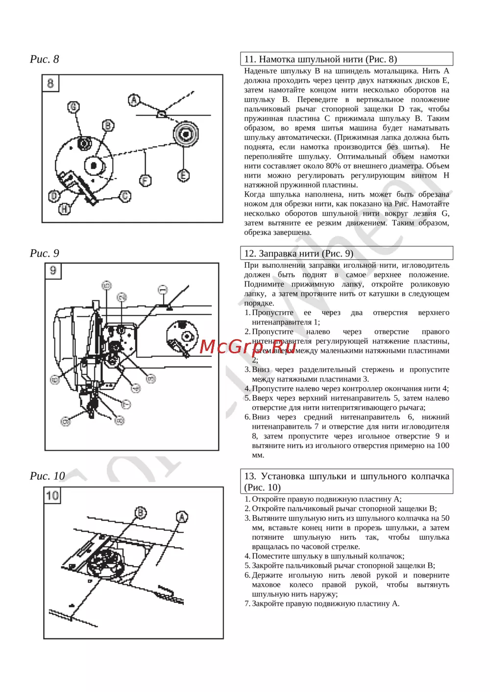 - Установка шпульки и шпульного колпачка рис 10 p.7
