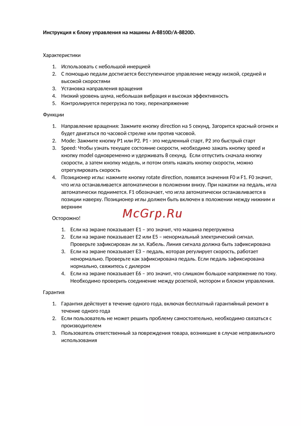 Инструкция к блоку управления на машины A-8810D/A-8820D.