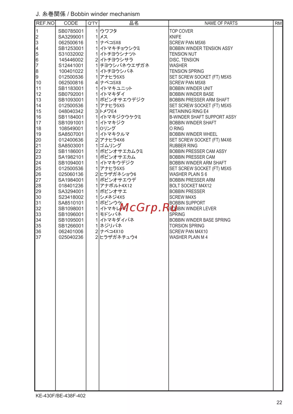 - Sp ke 430f be 438f different parts list ke 430f be 438f p.58