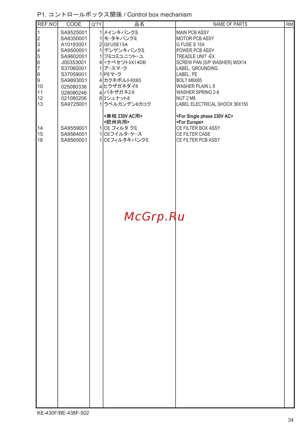- P1 control box mechanism p.38