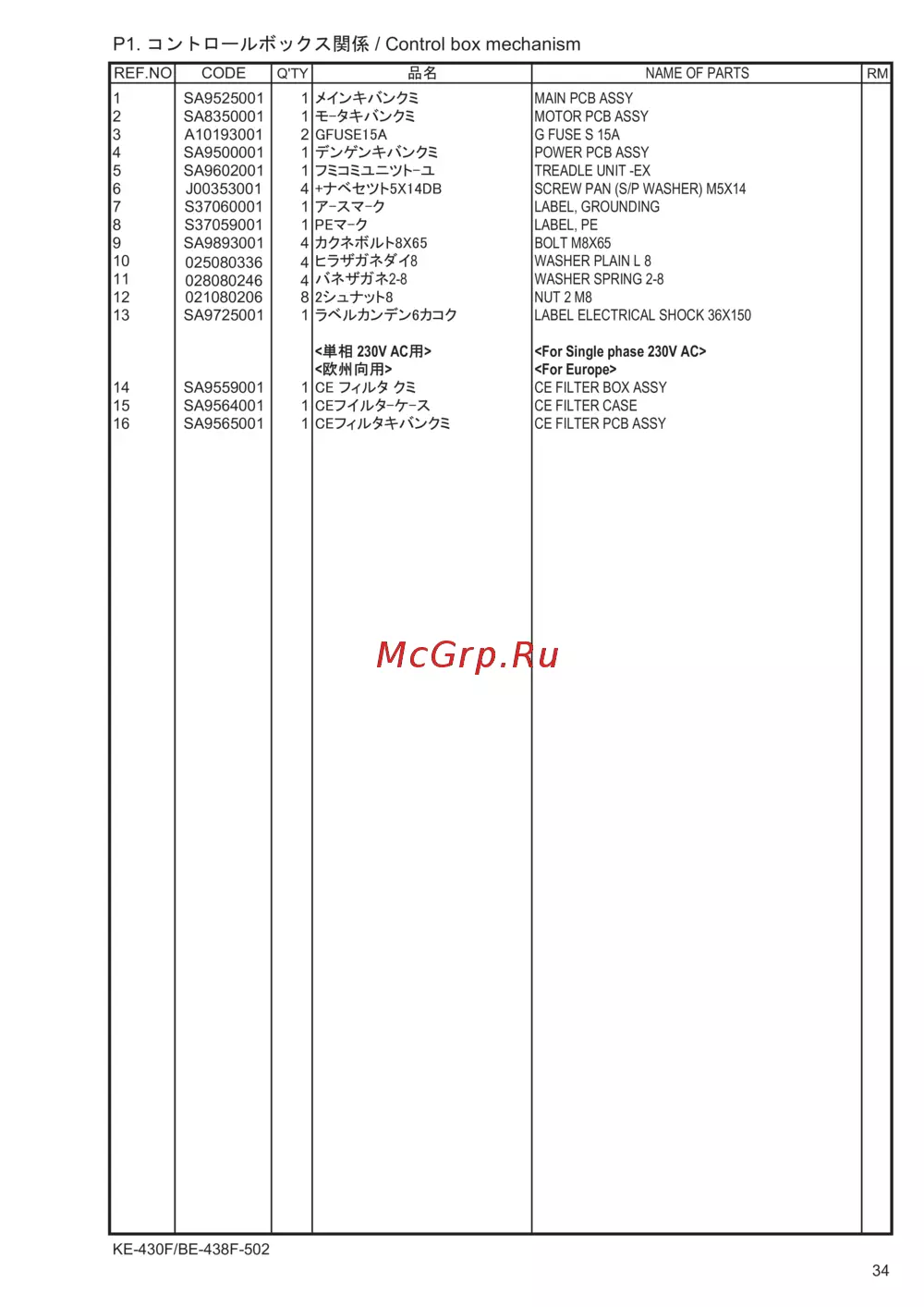 - Sp ke 430f be 438f different parts list ke 430f be 438f p.58