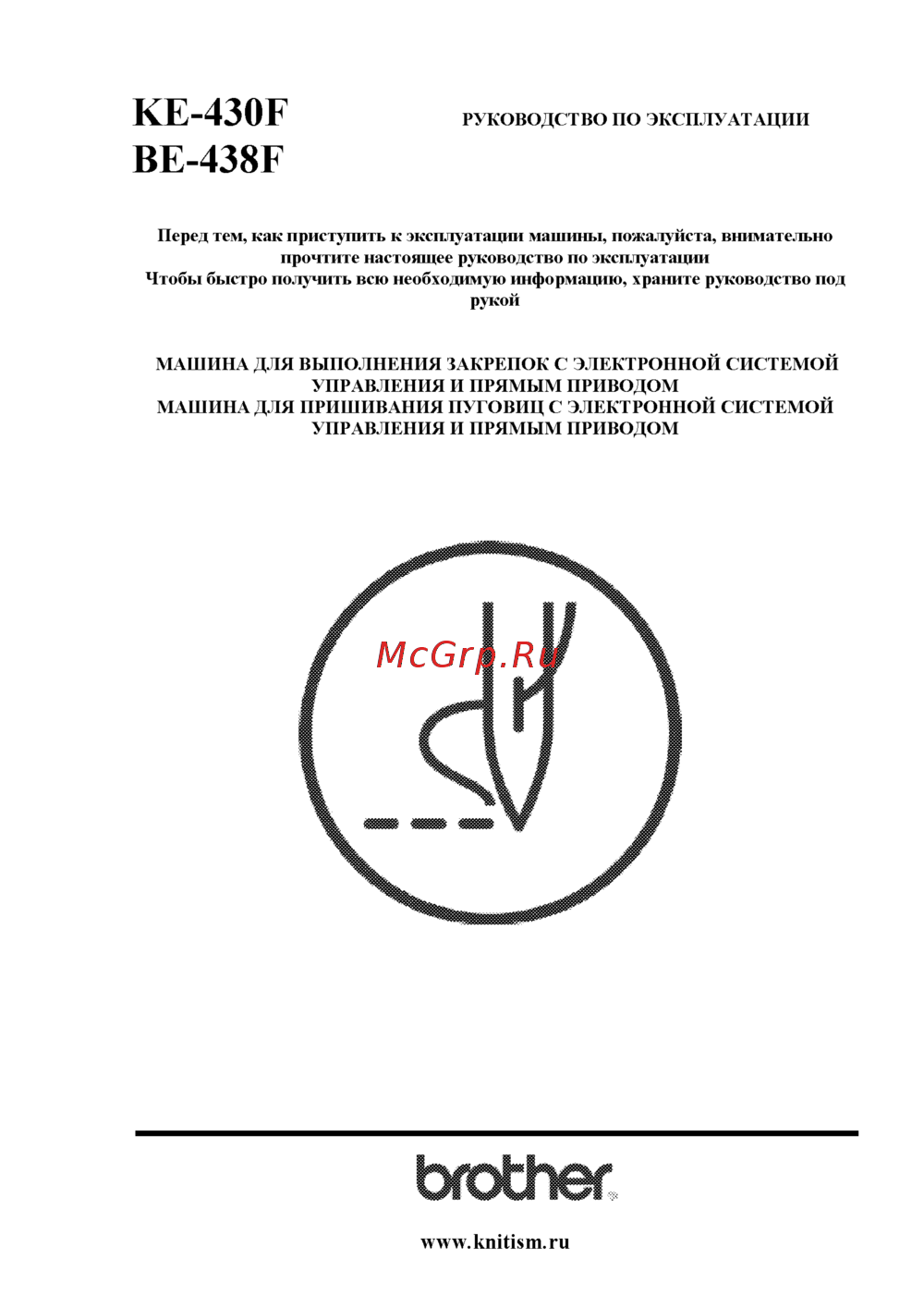 КЕ 430Е ВЕ 438Е РУКОВОДСТВО ПО ЭКСПЛУАТАЦИИ Перед тем как приступить к эксплуатации машины пожалуйста внимательно прочтите настоящее руководство по эксплуатации Чтобы быстро получить всю необходимую информацию храните руководство под рукой МАШИНА ДЛЯ ВЫПОЛНЕНИЯ ЗАКРЕПОК С ЭЛЕКТРОННОЙ СИСТЕМОЙ УПРАВЛЕНИЯ И ПРЯМЫМ ПРИВОДОМ МАШИНА ДЛЯ ПРИШИВАНИЯ ПУГОВИЦ С ЭЛЕКТРОННОЙ СИСТЕМОЙ УПРАВЛЕНИЯ И ПРЯМЫМ ПРИВОДОМ www knitism ru
