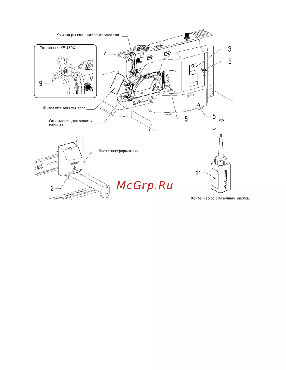 - Только для ke 430hx не удерживайте эту часть отклоняя головку машины назад это может привести к травме p.9