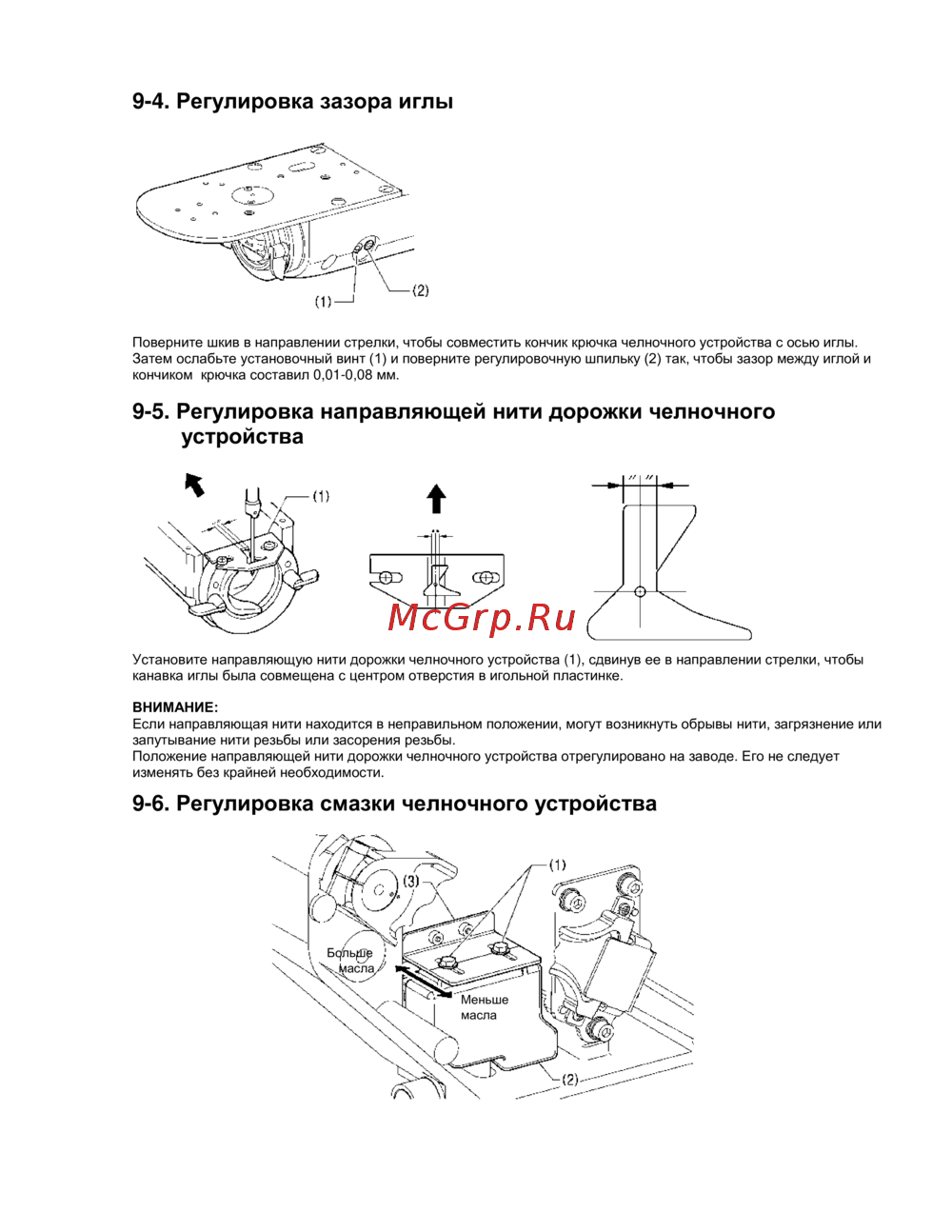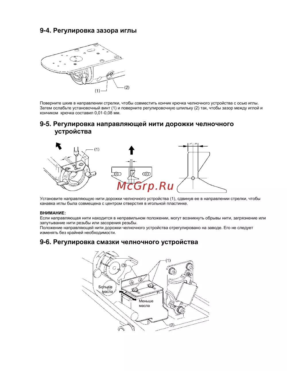 Узнайте, как правильно отрегулировать зазор иглы и направляющую нити в швейных машинах для предотвращения обрывов и загрязнений. Подробные инструкции.