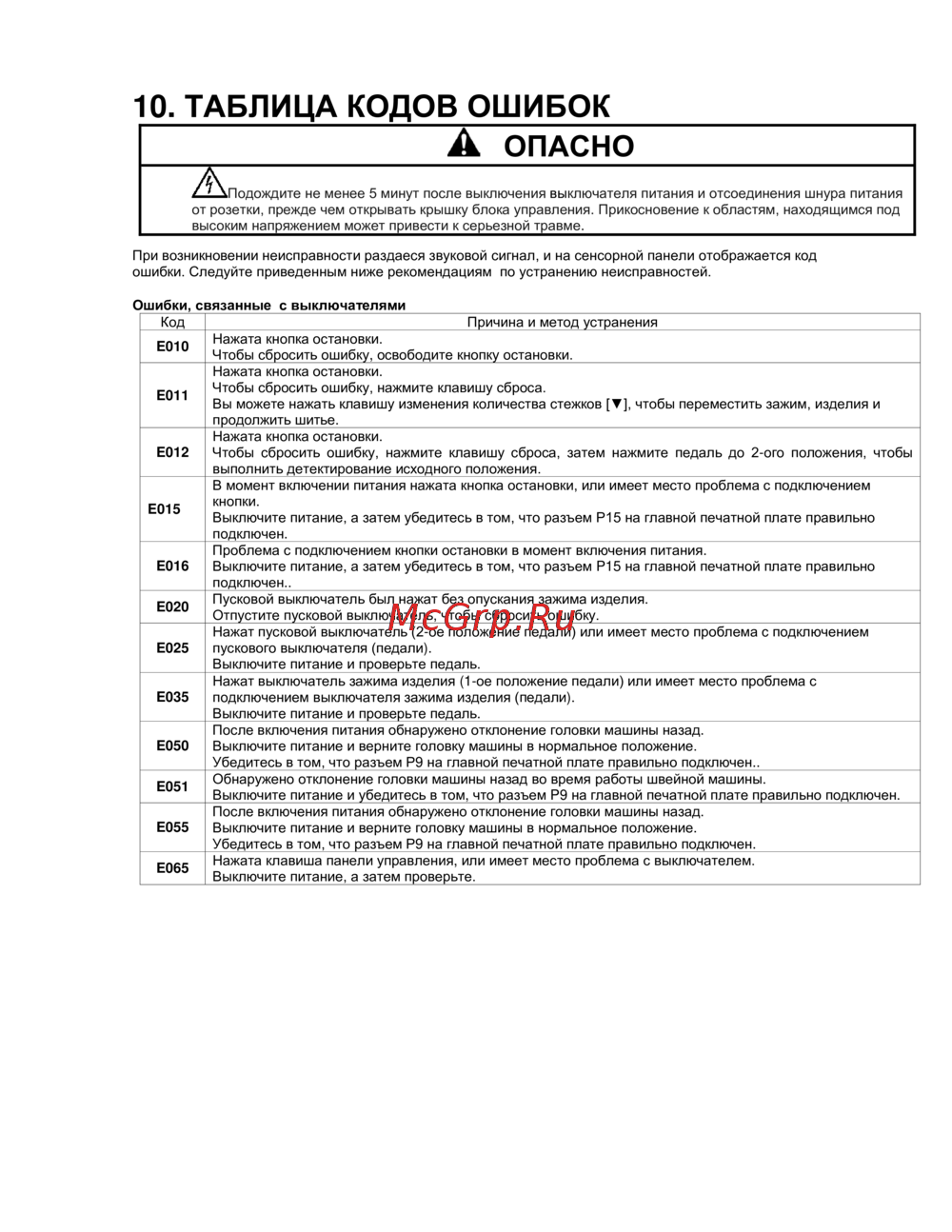 Узнайте о кодах ошибок швейных машин и методах их устранения. Следуйте рекомендациям для безопасной работы и устранения неисправностей.