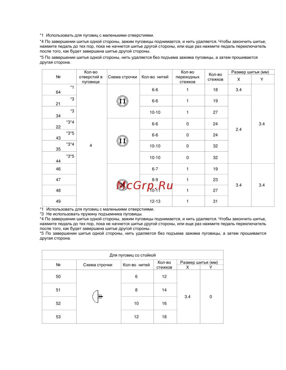 *1 Использовать для пуговиц с маленькими отверстиями.