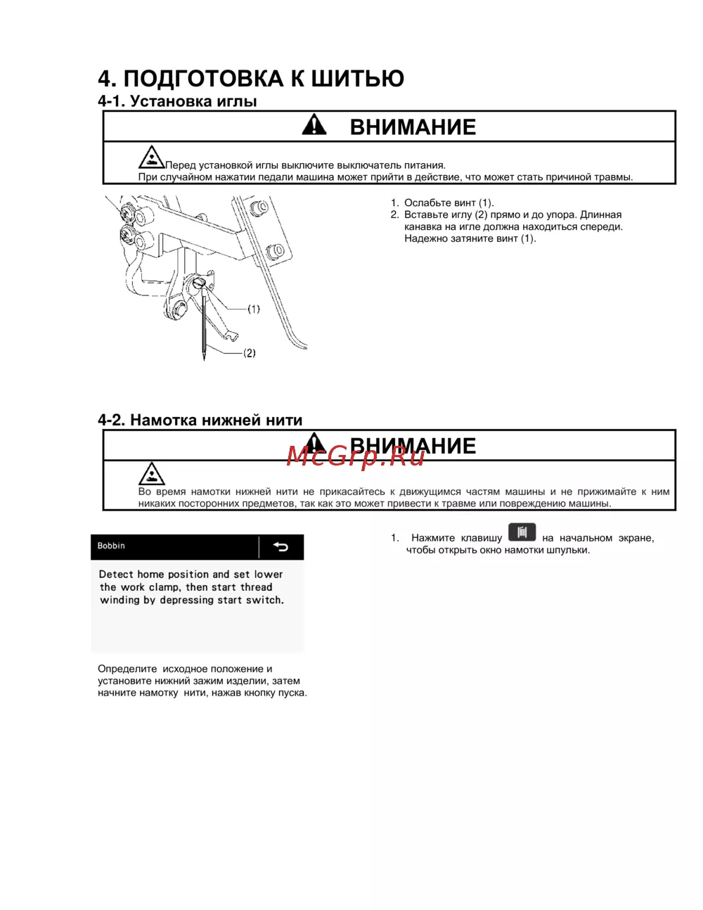 Узнайте, как правильно установить иглу и намотать нижнюю нить для безопасного и эффективного шитья. Следуйте инструкциям для предотвращения травм.