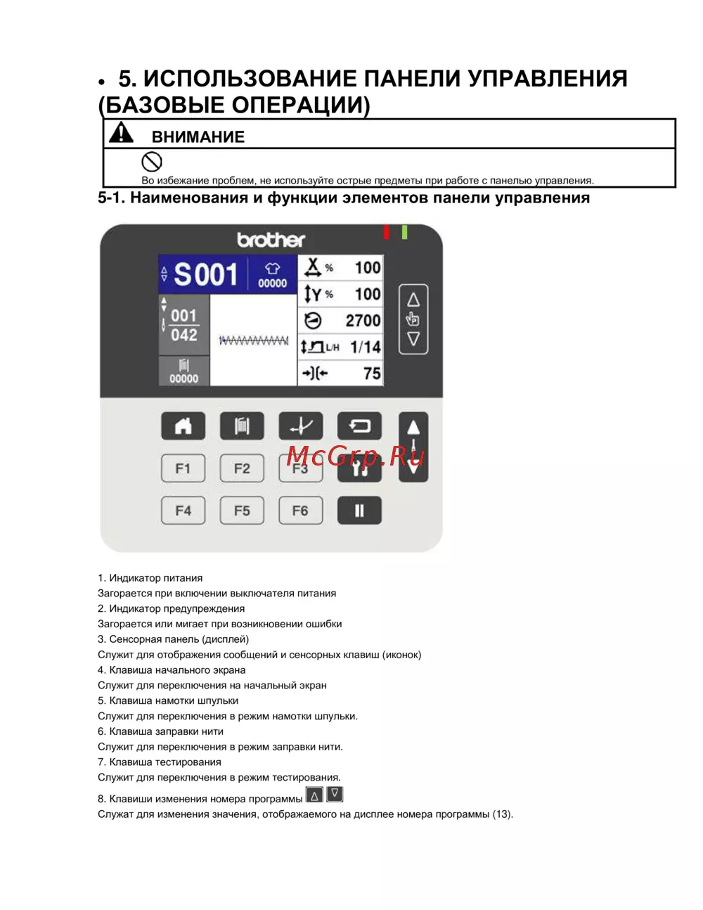 Во избежание проблем, не используйте острые предметы при работе с панелью управления.