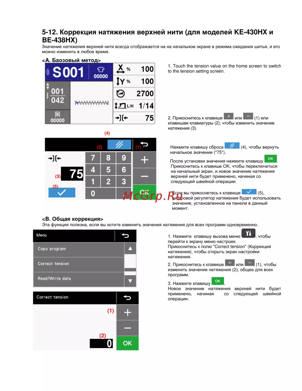 5-12. Коррекция натяжения верхней нити (для моделей KE-430HX и