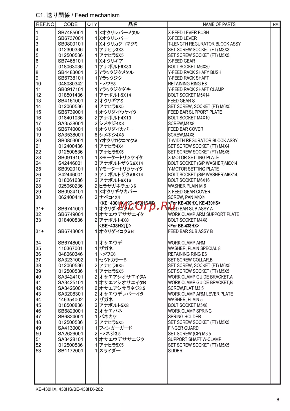 - Sp different parts list ke 430hx ke 430hs be 438hx p.56