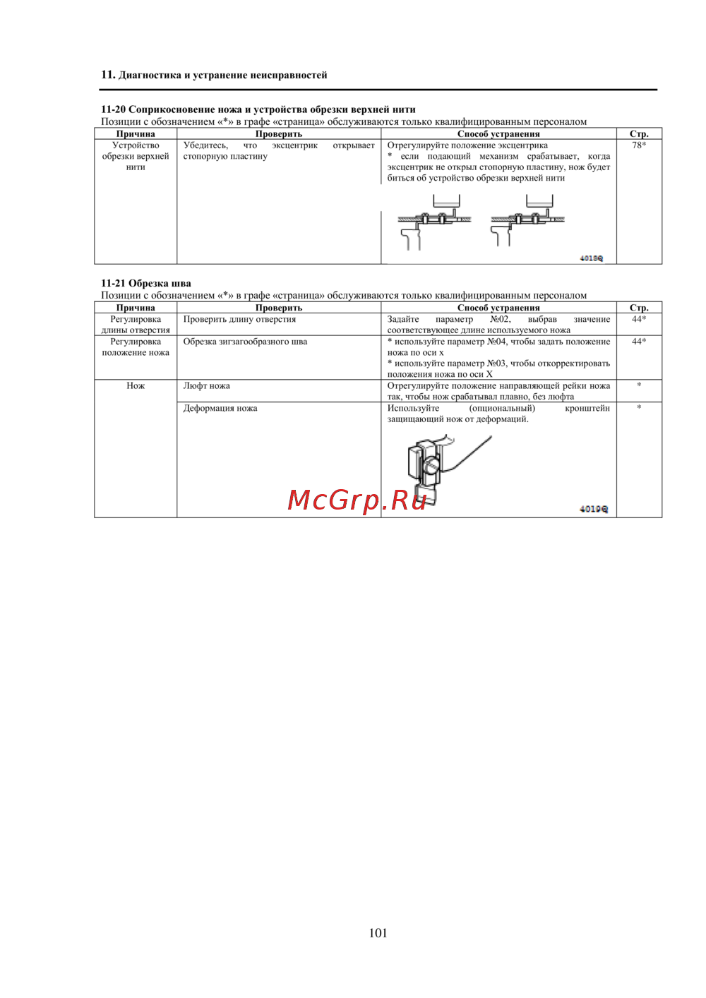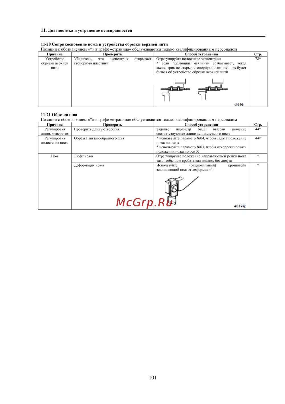 - 11 неравномерные швы 9 застревание в игольной пластине участки передней и задней закрепки материала застревают в игольном отверстии позиции с обозначением в графе страница обслуживаются только квалифицированным персоналом p.92