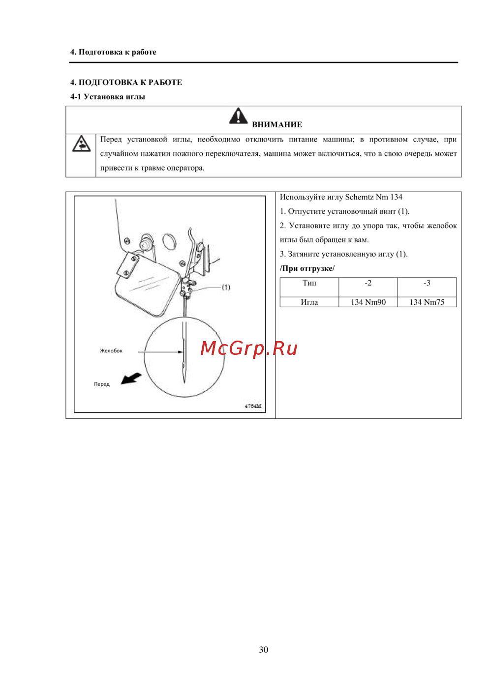 Перед установкой иглы, необходимо отключить питание машины; в противном случае, при