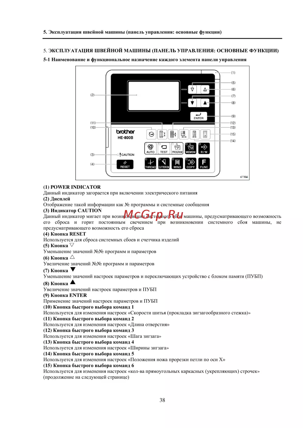 5. ЭКСПЛУАТАЦИЯ ШВЕЙНОЙ МАШИНЫ (ПАНЕЛЬ УПРАВЛЕНИЯ: ОСНОВНЫЕ ФУНКЦИИ)