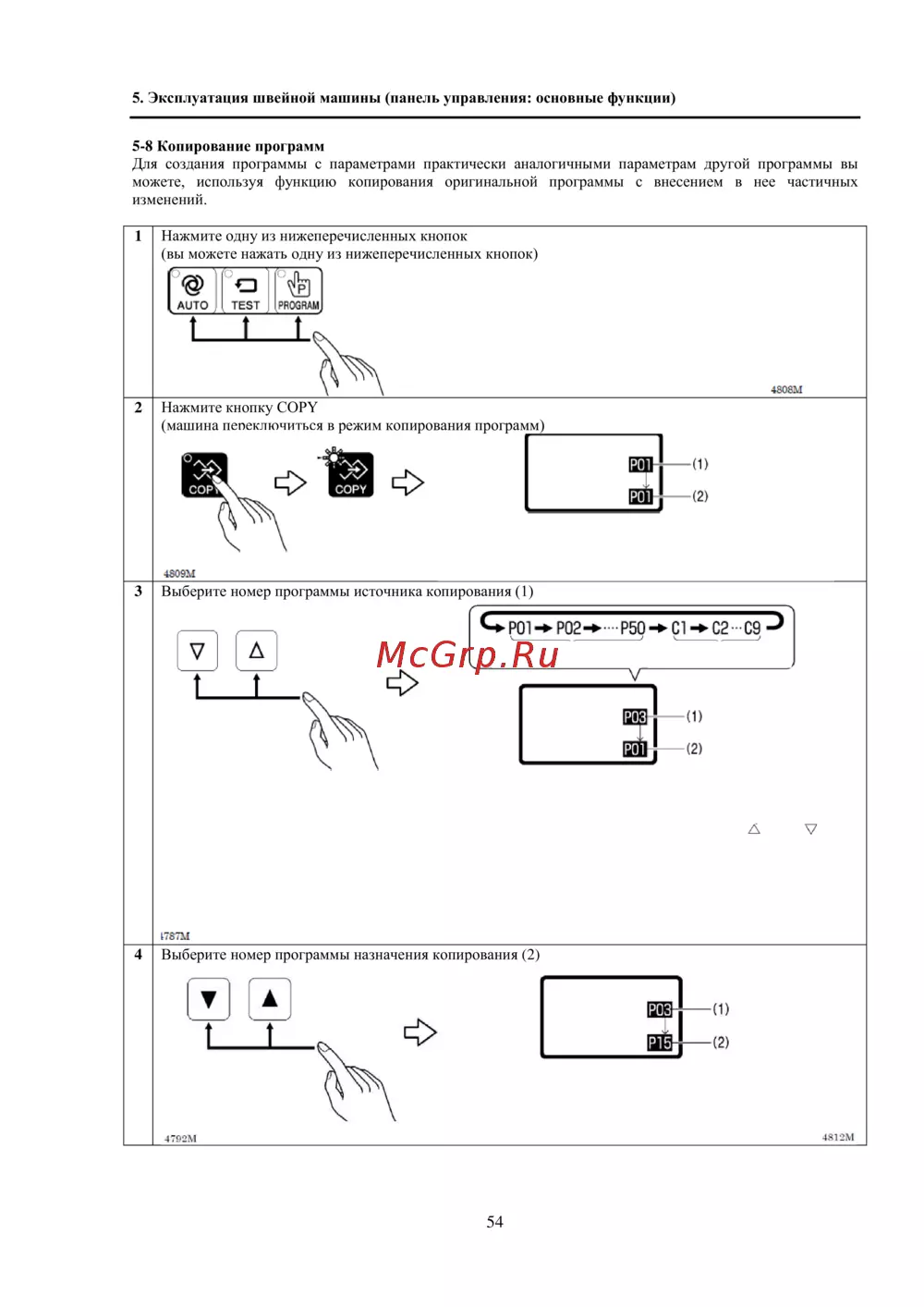 - Выберите номер программы источника копирования 1 p.54