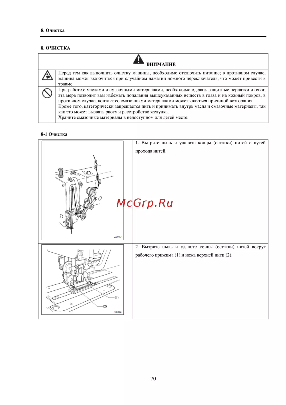 - 11 неравномерные швы 9 застревание в игольной пластине участки передней и задней закрепки материала застревают в игольном отверстии позиции с обозначением в графе страница обслуживаются только квалифицированным персоналом p.92
