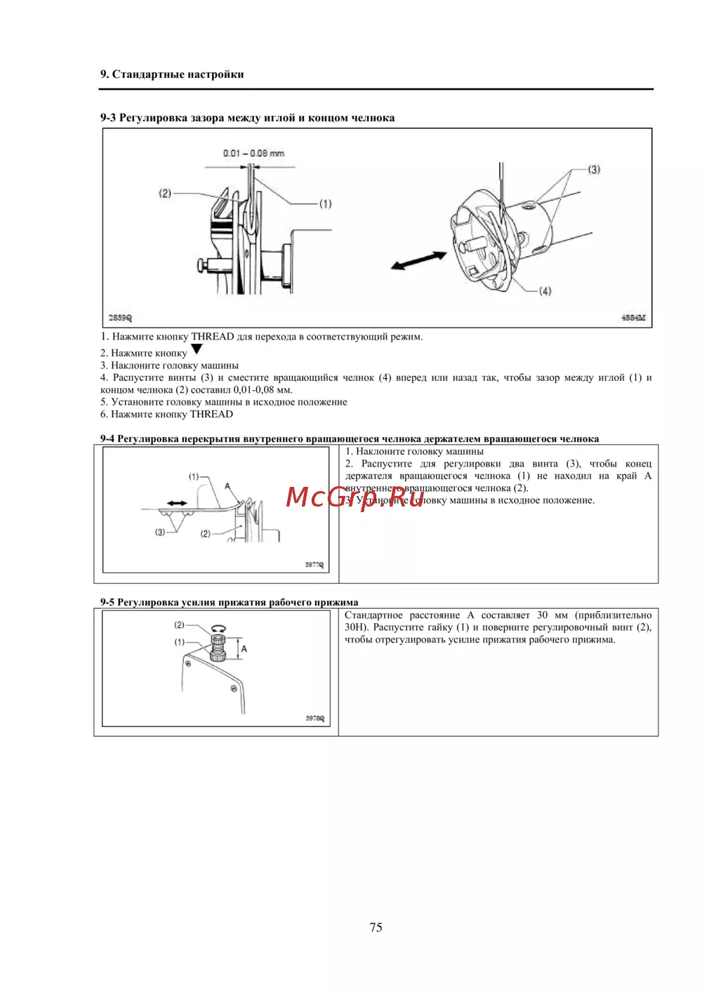 - 9 настройка синхронизации зажима нижней нити 9 9 настройка синхронизации зажима нижней нити p.79