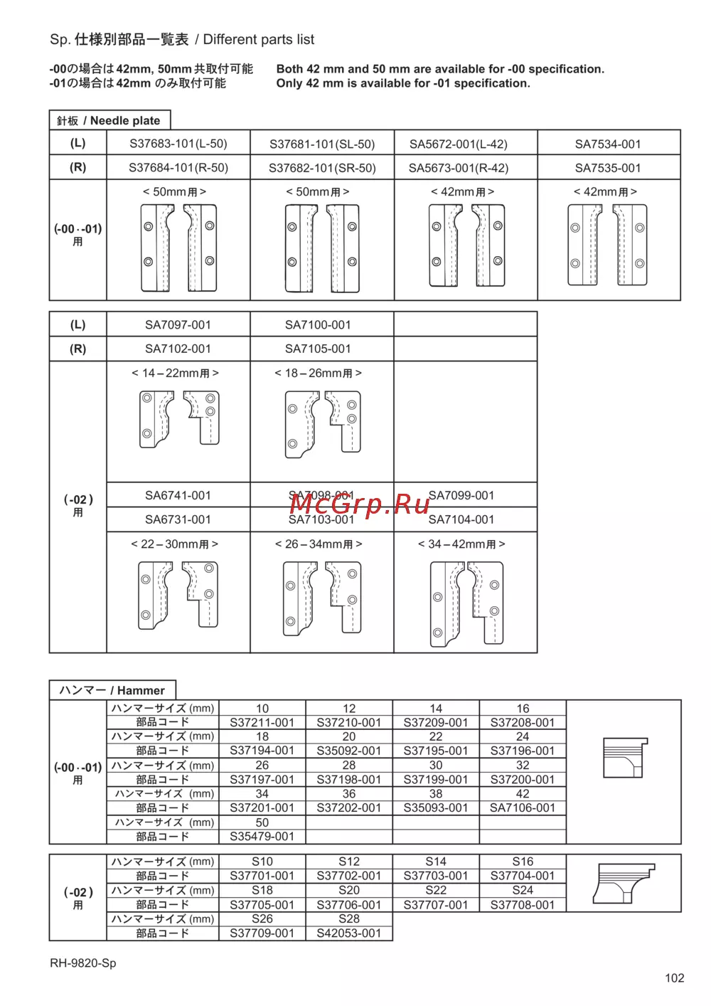 Brother RH-9820-01/02 [107/118] Sp different parts list