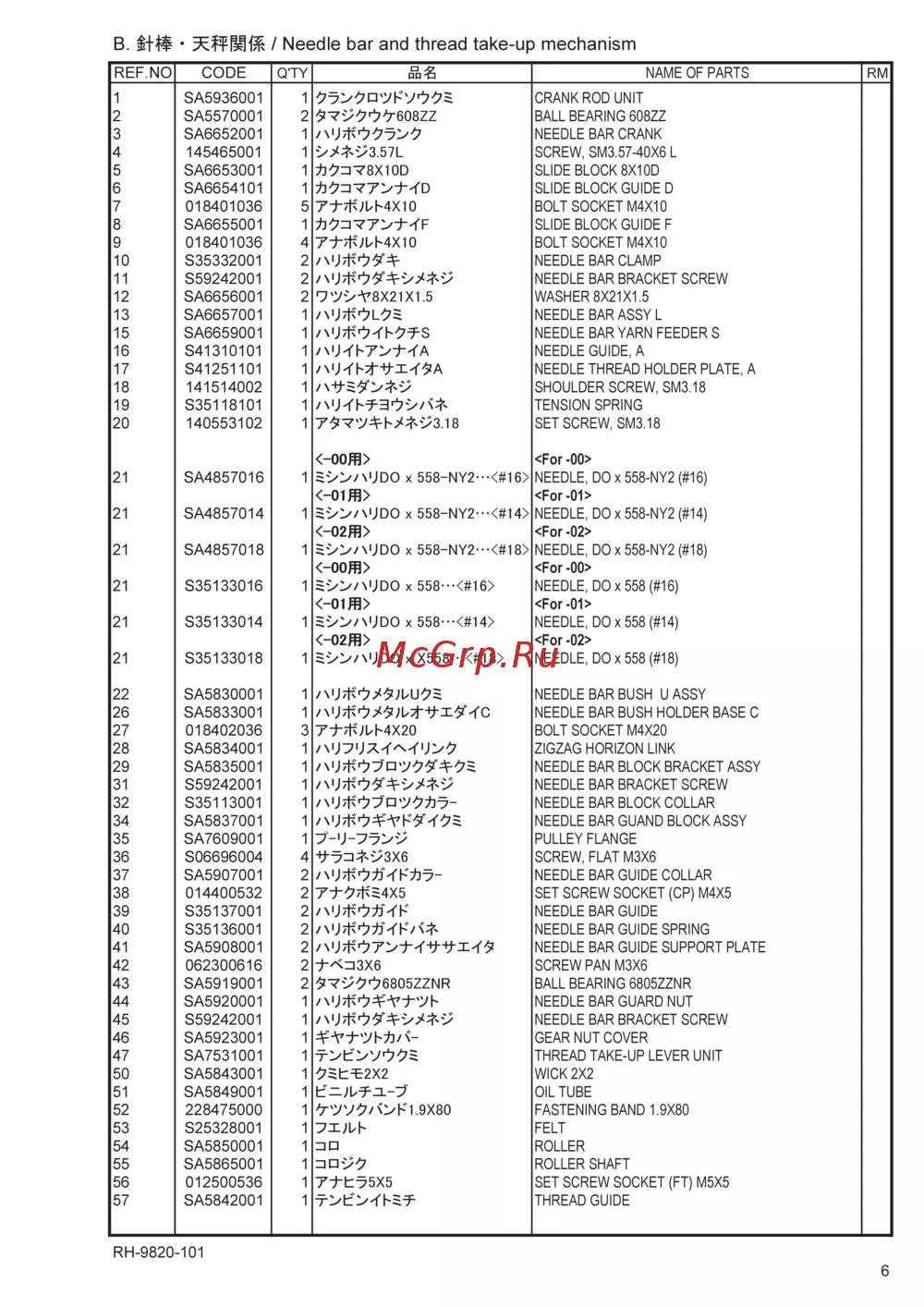 Brother RH-9820-01/02 [11/118] B needle bar and thread take up m echanism
