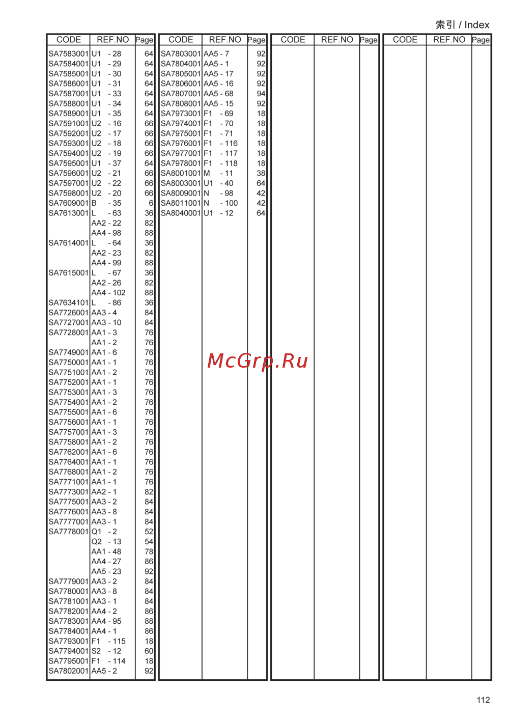 SA7593001 U2 - 18 66 SA7976001 F1 - 116 18