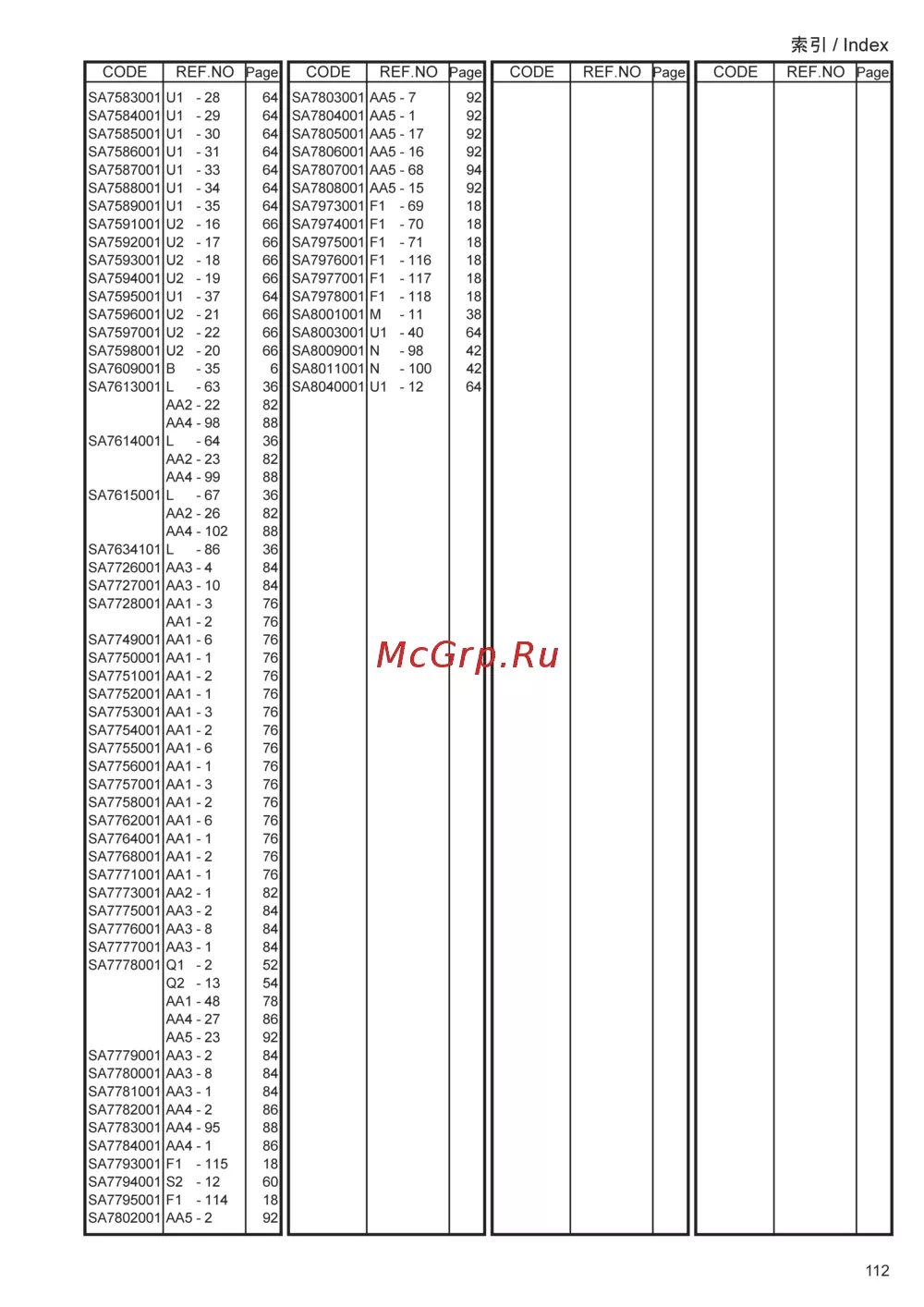SA7587001 U1 - 33 64 SA7807001 AA5 - 68 94