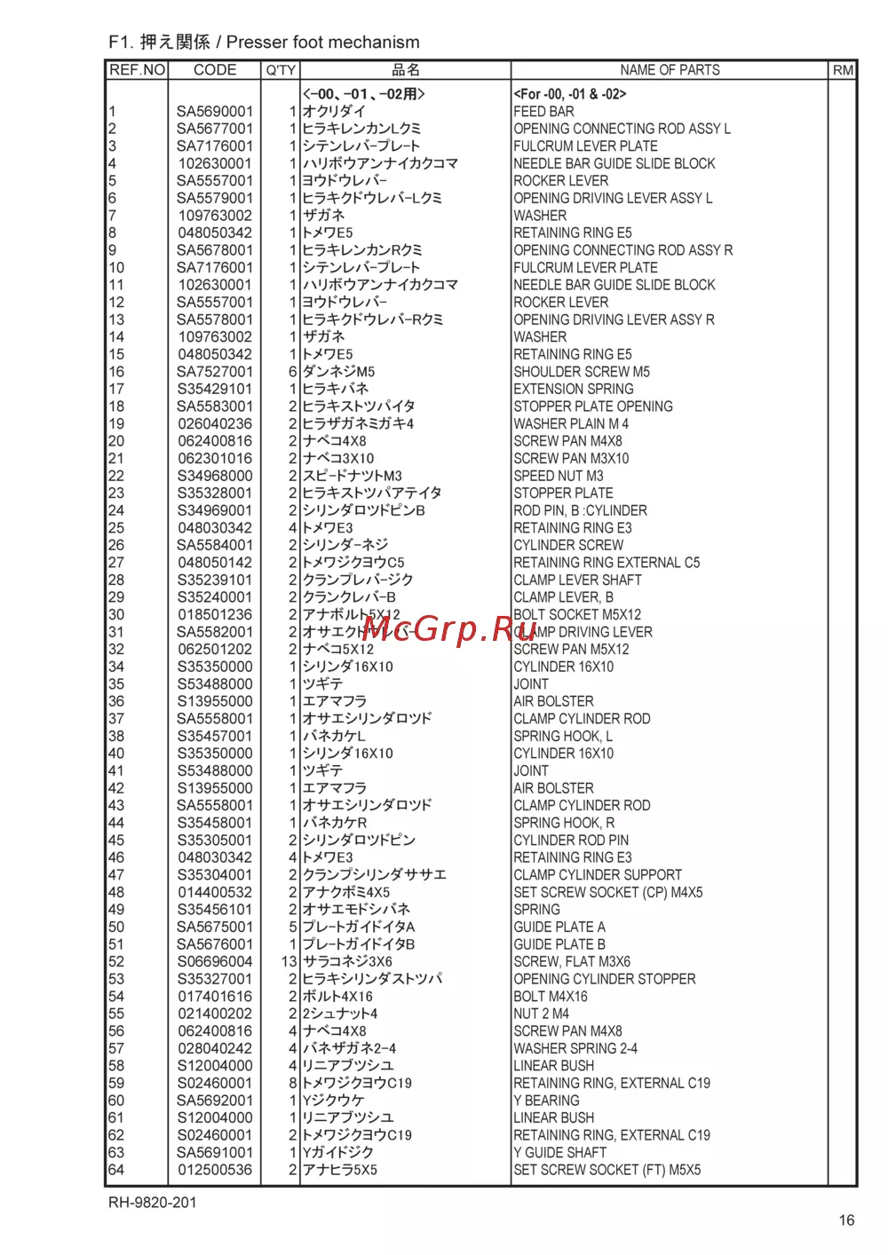 Brother RH-9820-01/02 [21/118] F1 presser foot m echanism