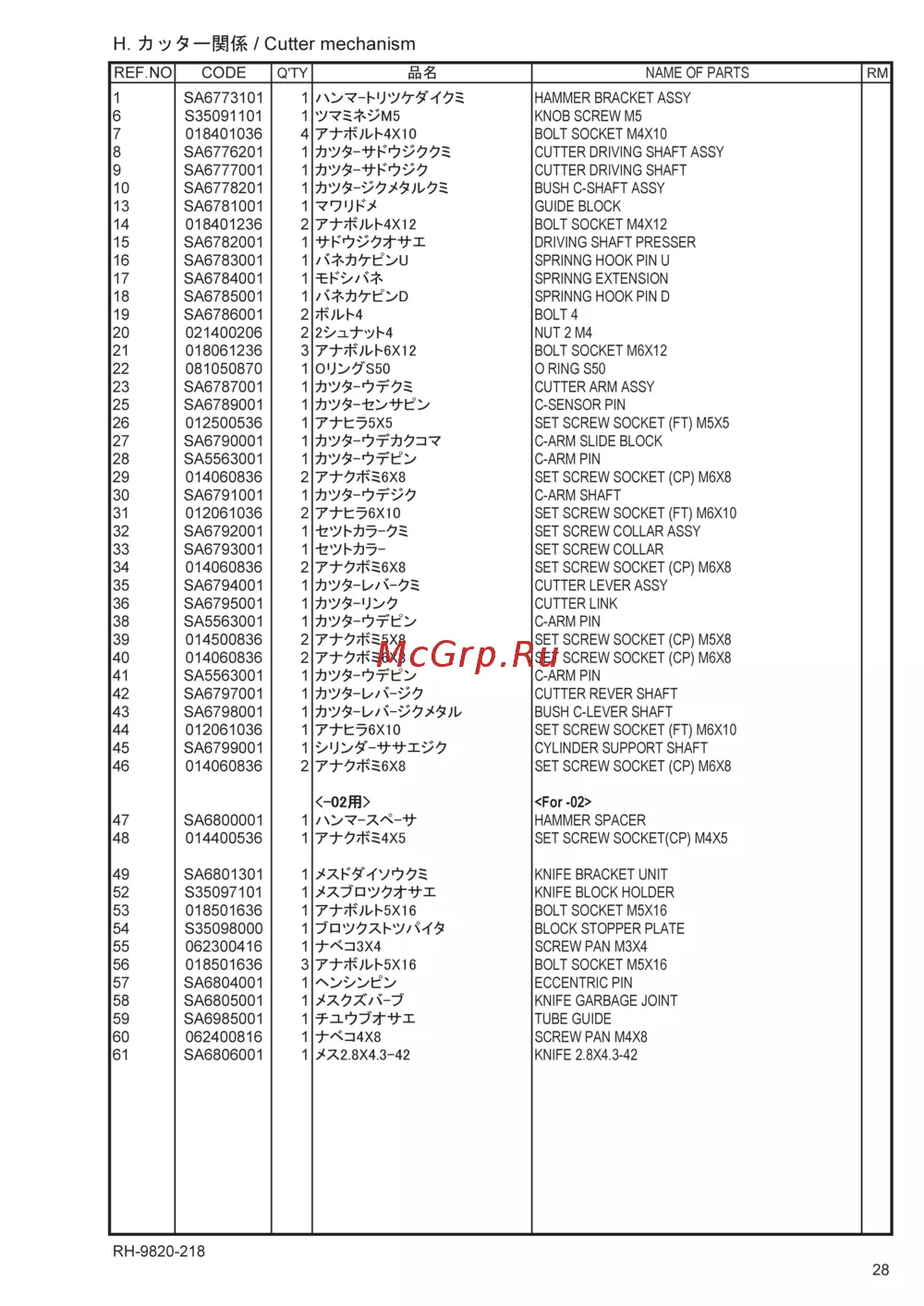 Brother RH-9820-01/02 [33/118] H cutter m echanism